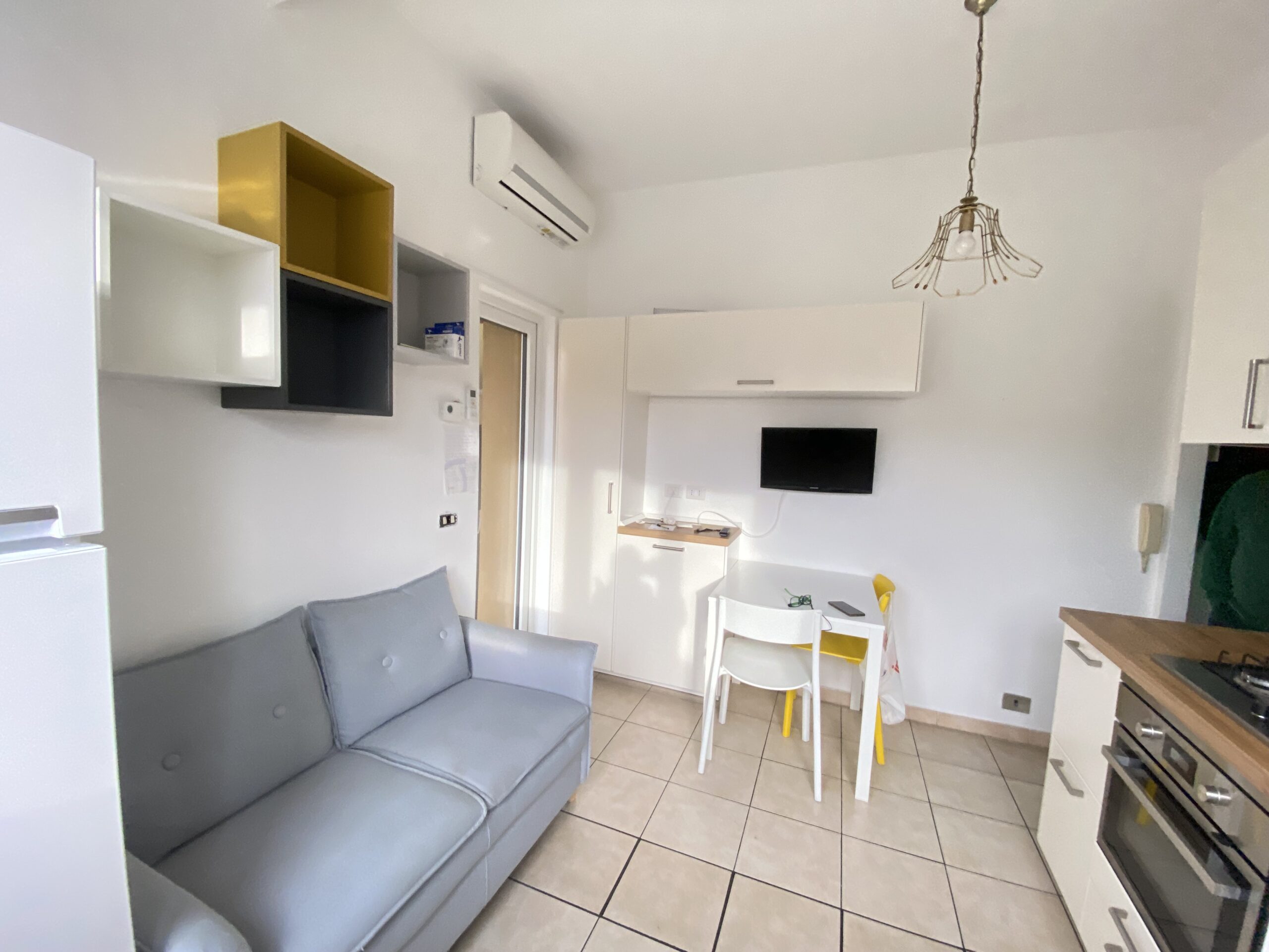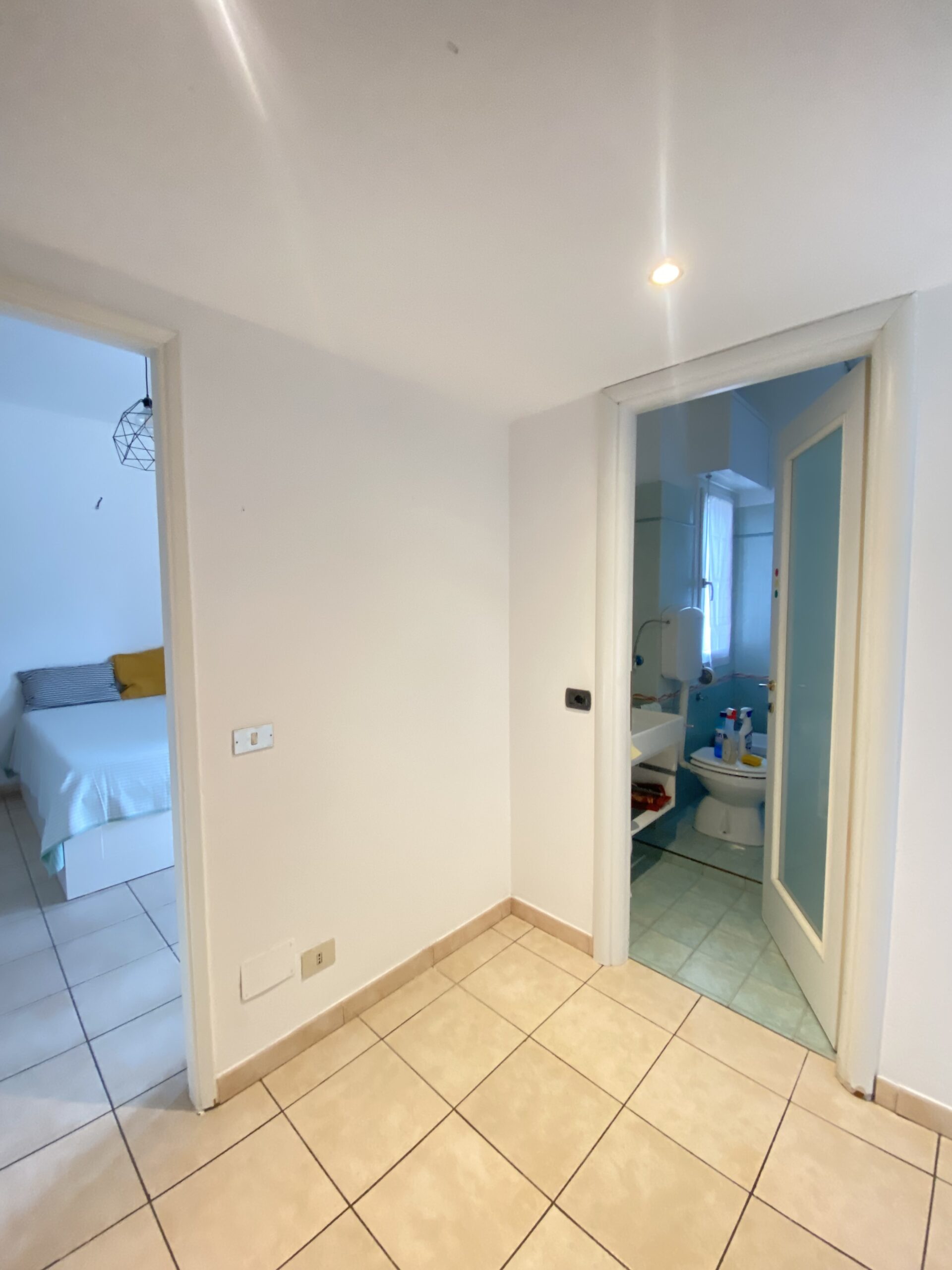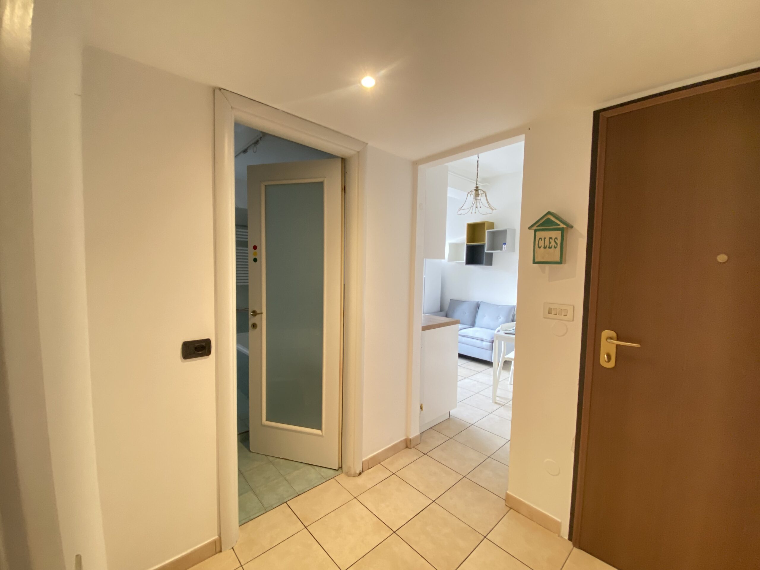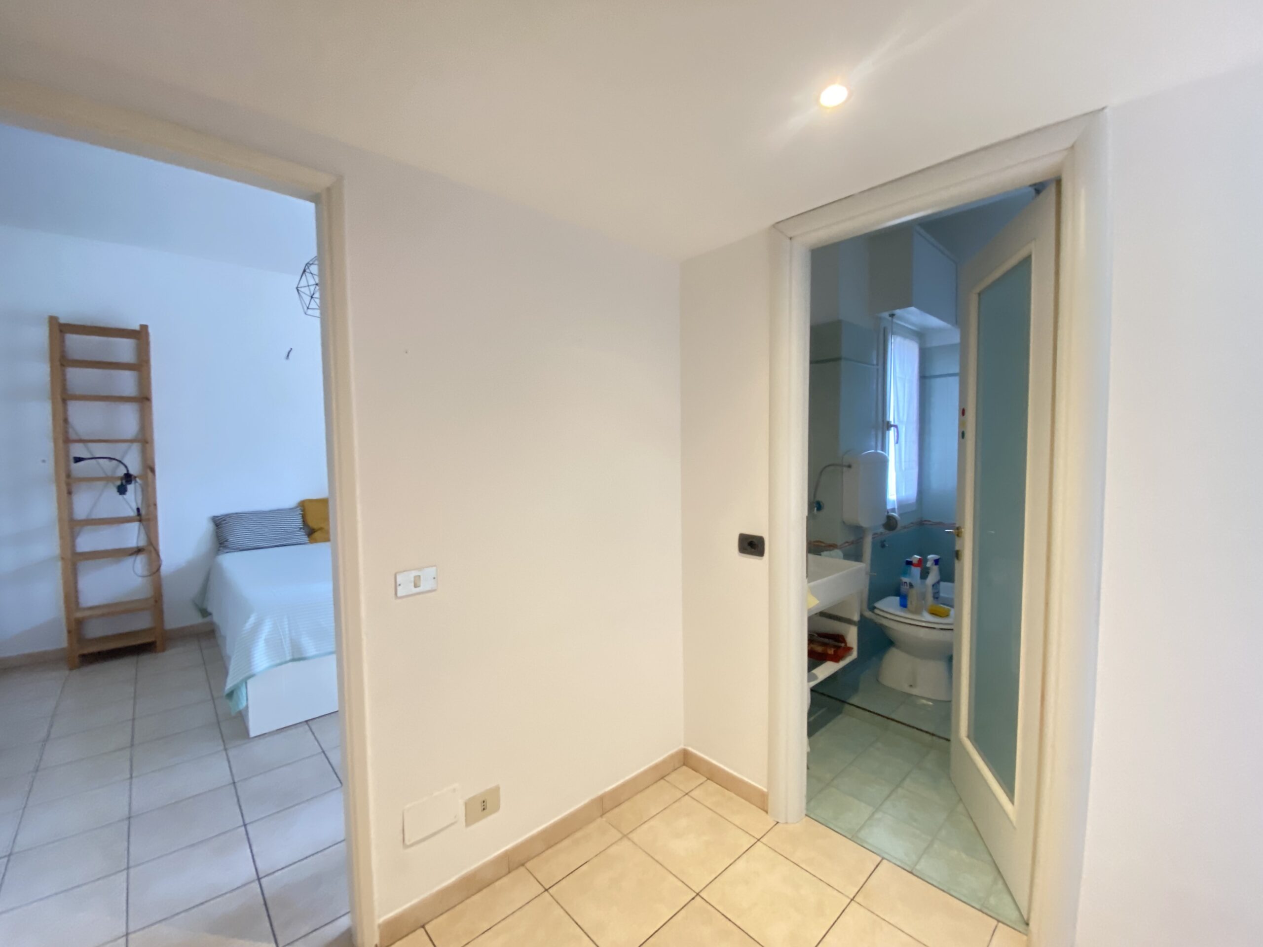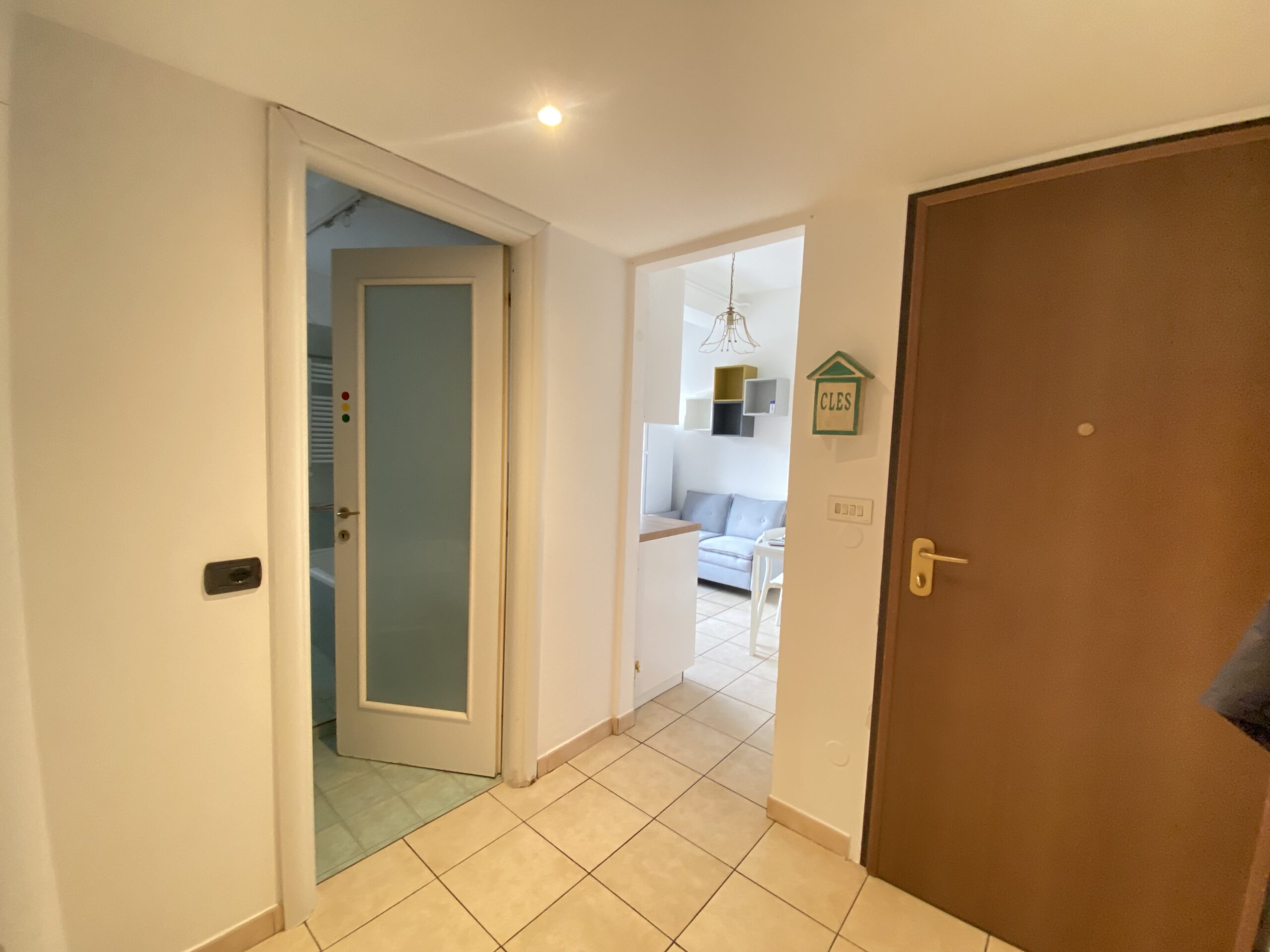 L’appartamento è composto da ingresso, soggiorno con cucina a vista, camera da letto, bagno, balcone con affaccio sul soggiorno, ripostiglio soppalcato, terrazzino e solaio.