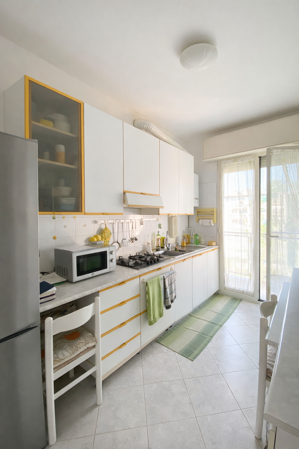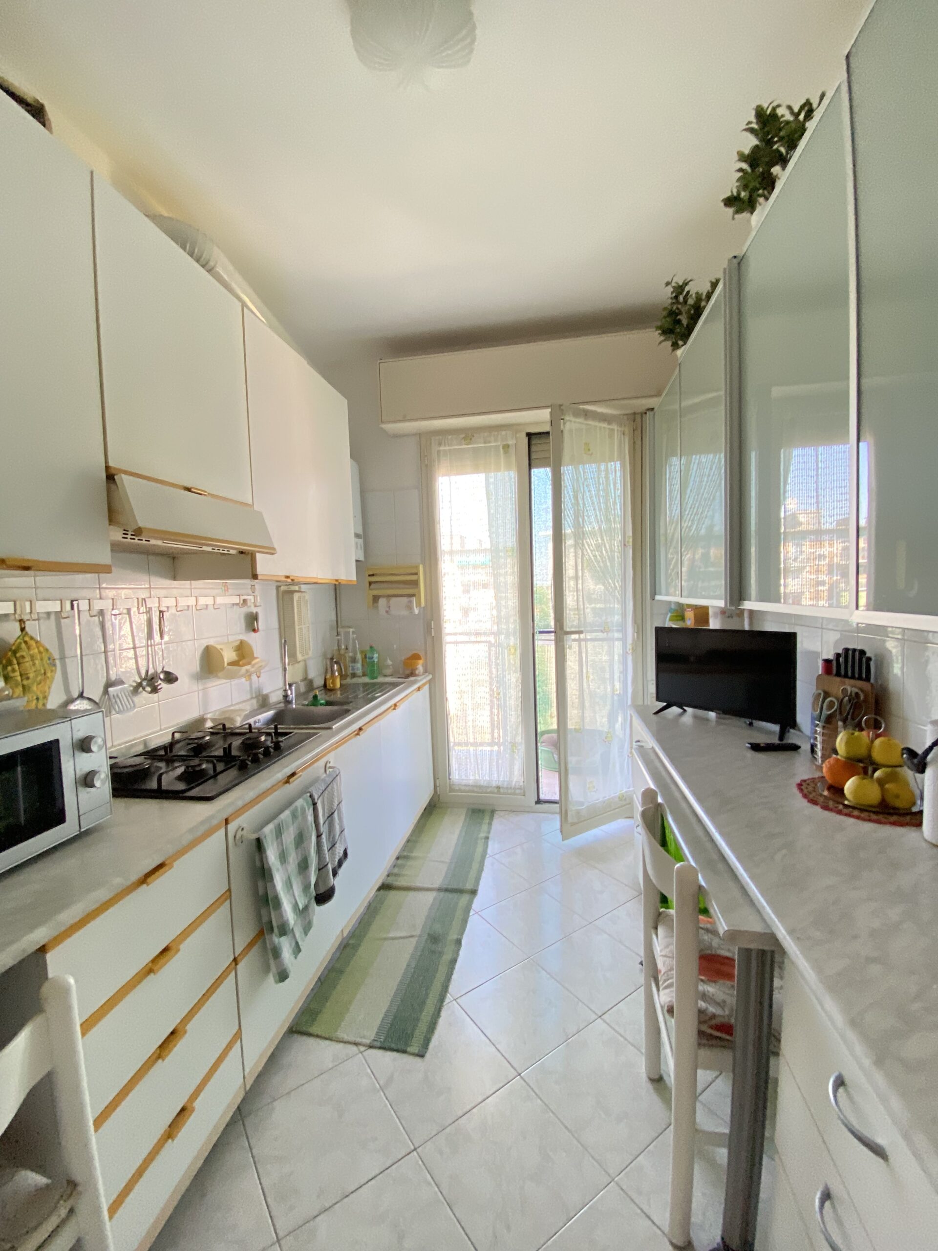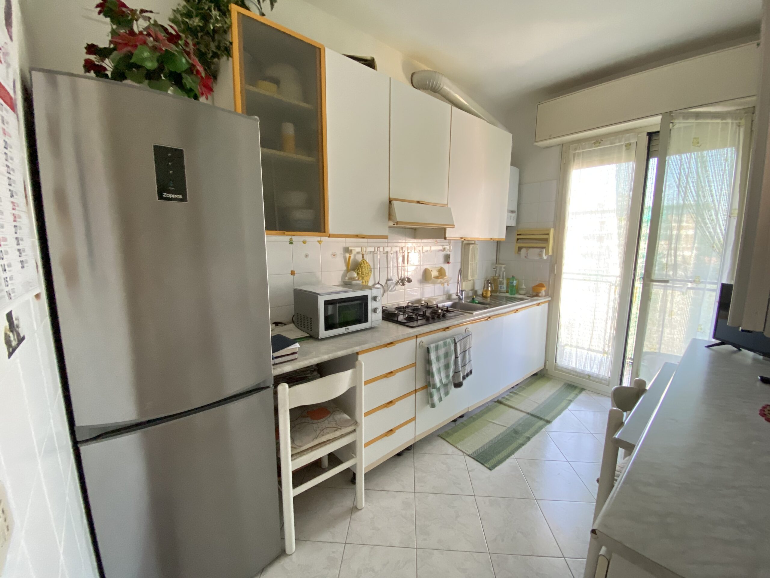 Composto da due ampi locali, il soggiorno si apre su un balcone perfetto per godersi momenti di relax all’aria aperta. La cucina semi abitabile, anch’essa dotata di un balcone, è ideale per chi ama cucinare e intrattenere.