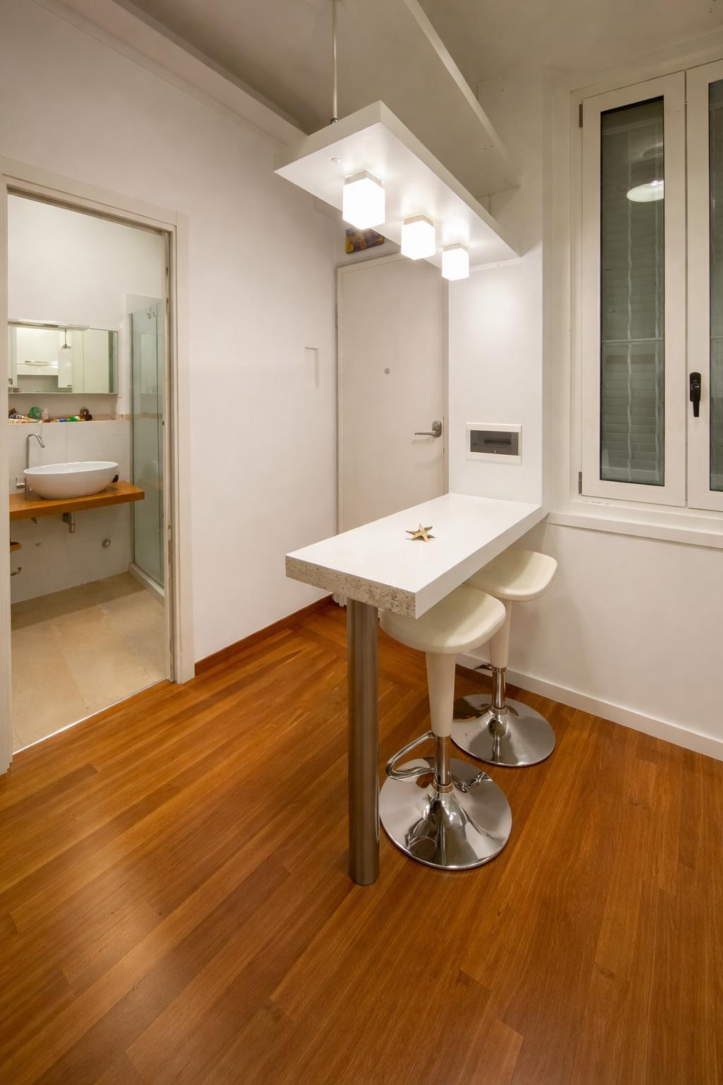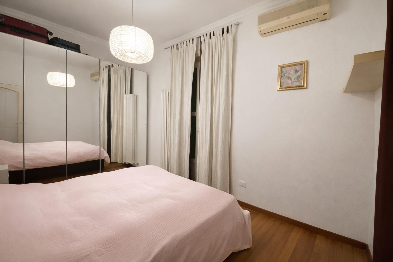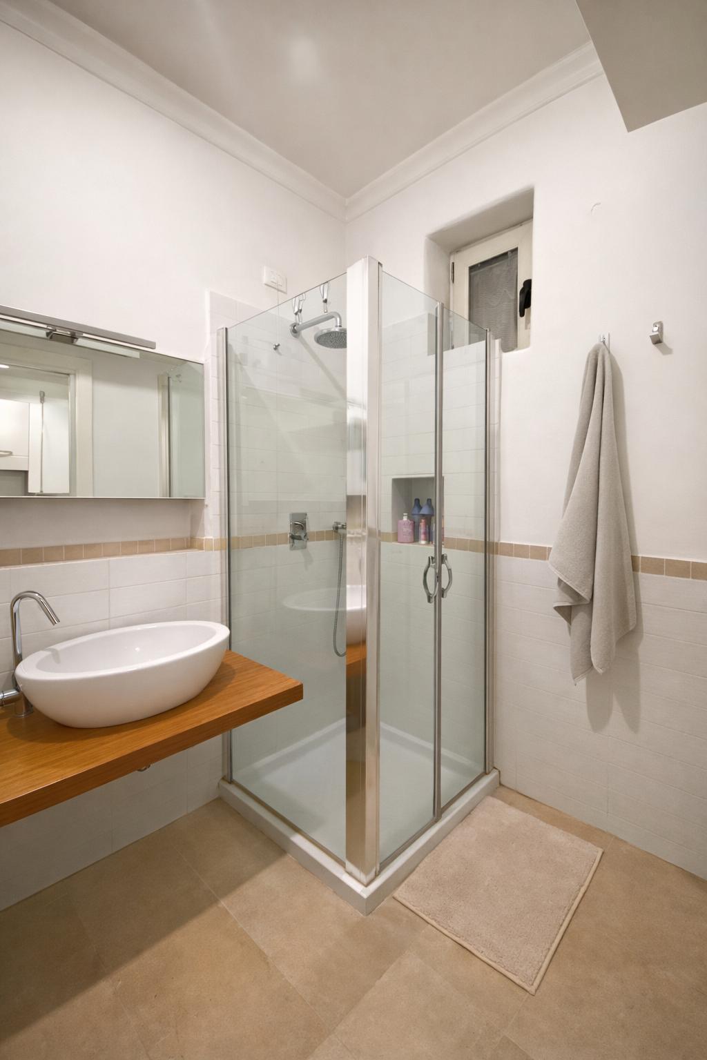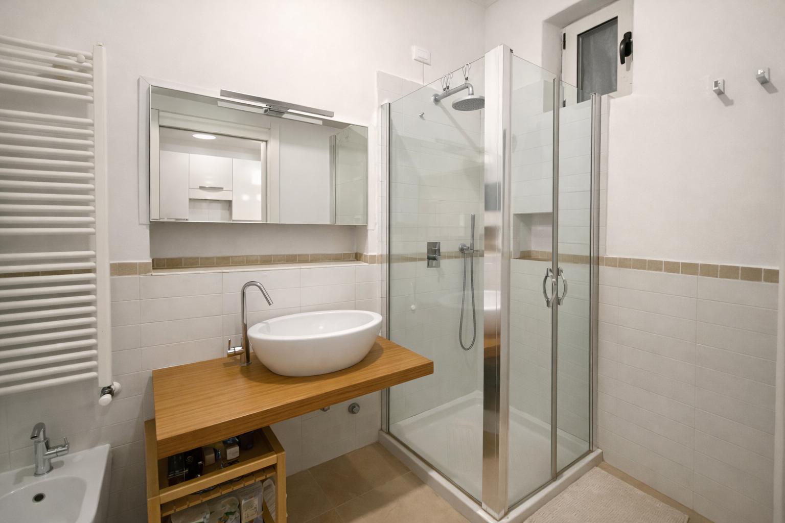 L’appartamento, molto luminoso e silenzioso grazie alla doppia esposizione sui cortili interni, si compone di ingresso privato, zona giorno con cucina a vista e area pranzo, camera da letto matrimoniale e bagno finestrato con box doccia.