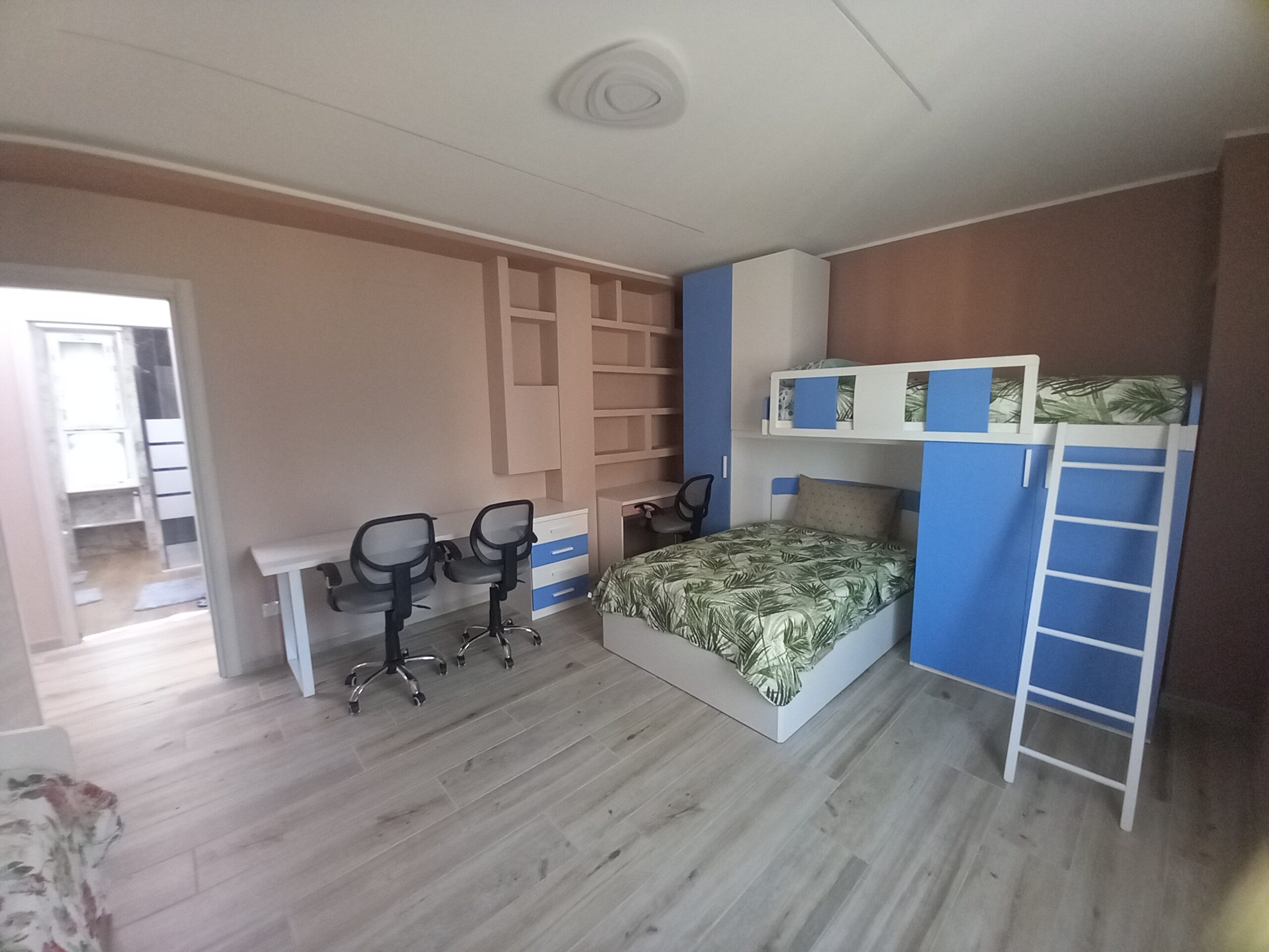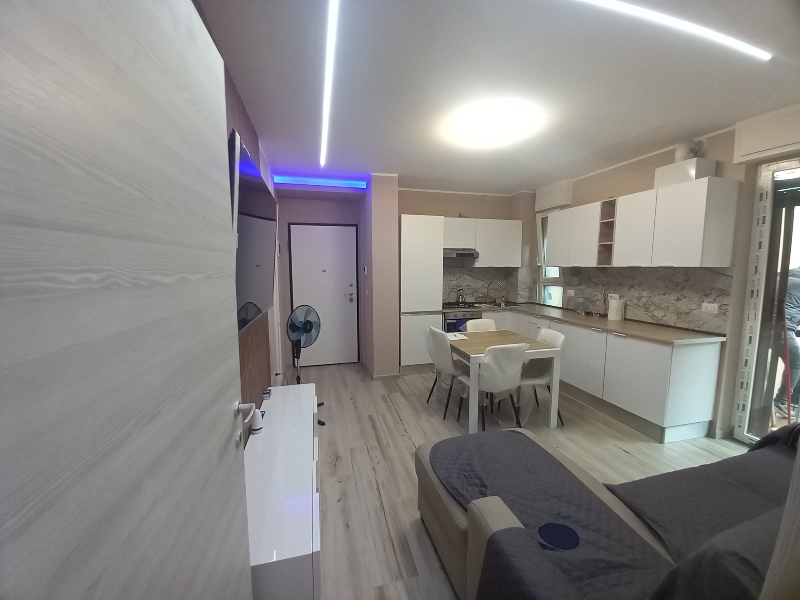 L’immobile è composto da ingresso, soggiorno con cucina a vista, 2 camere, bagno, balcone, cantina e triplo posto auto.