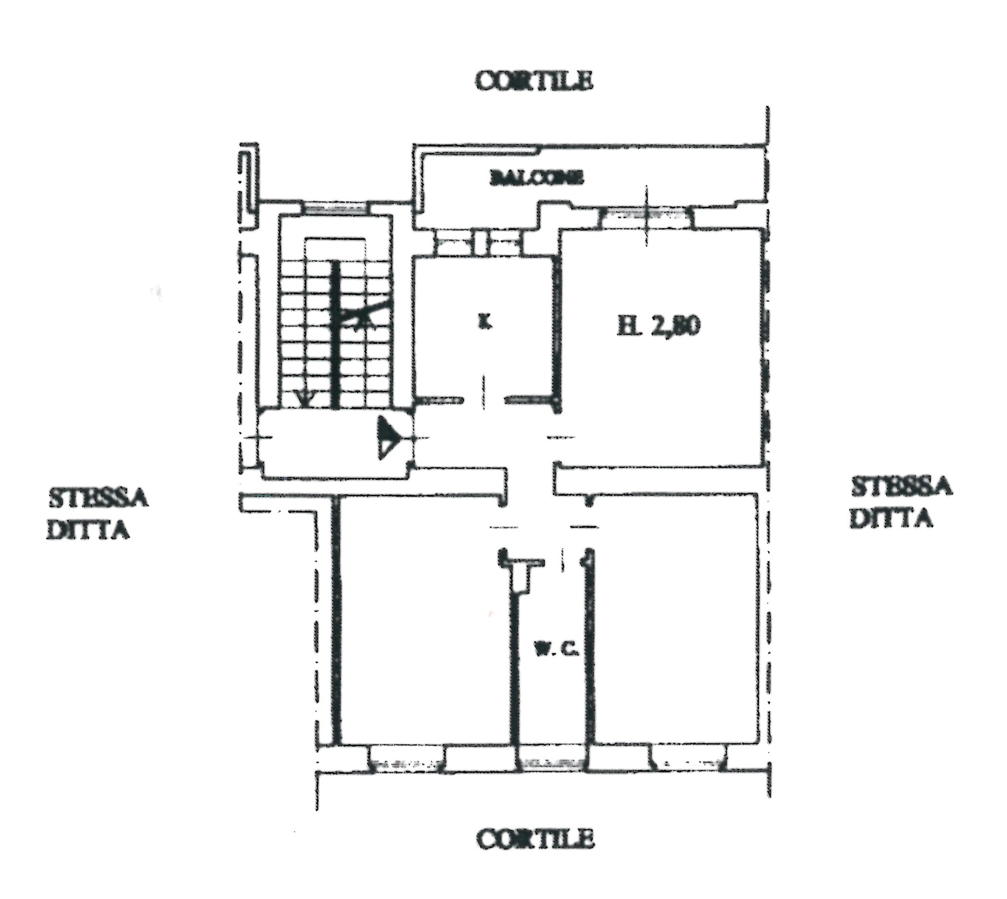 L’appartamento è composto da ingresso, soggiorno, cucina abitabile, 2 camere, bagno, balcone e cantina.