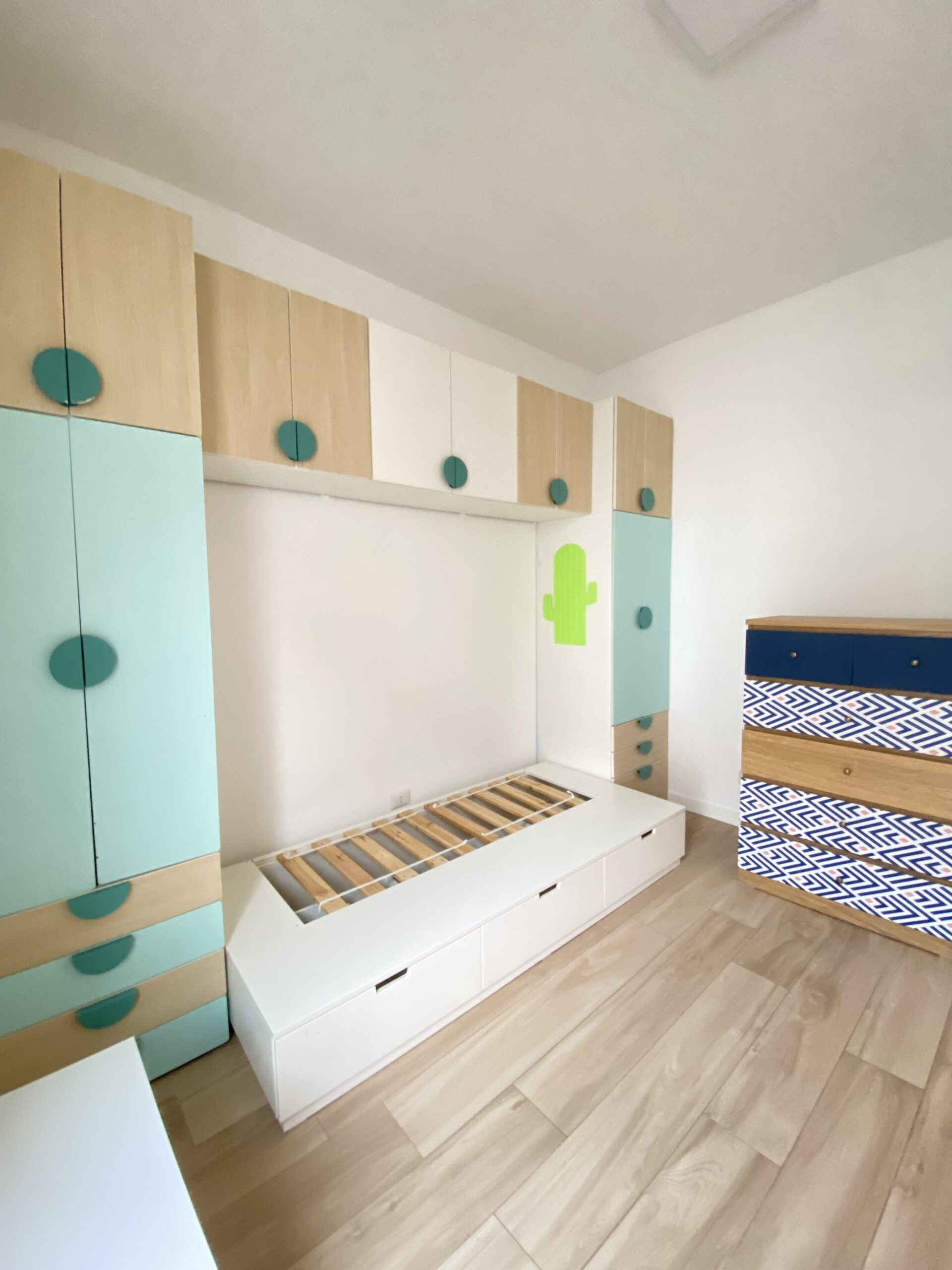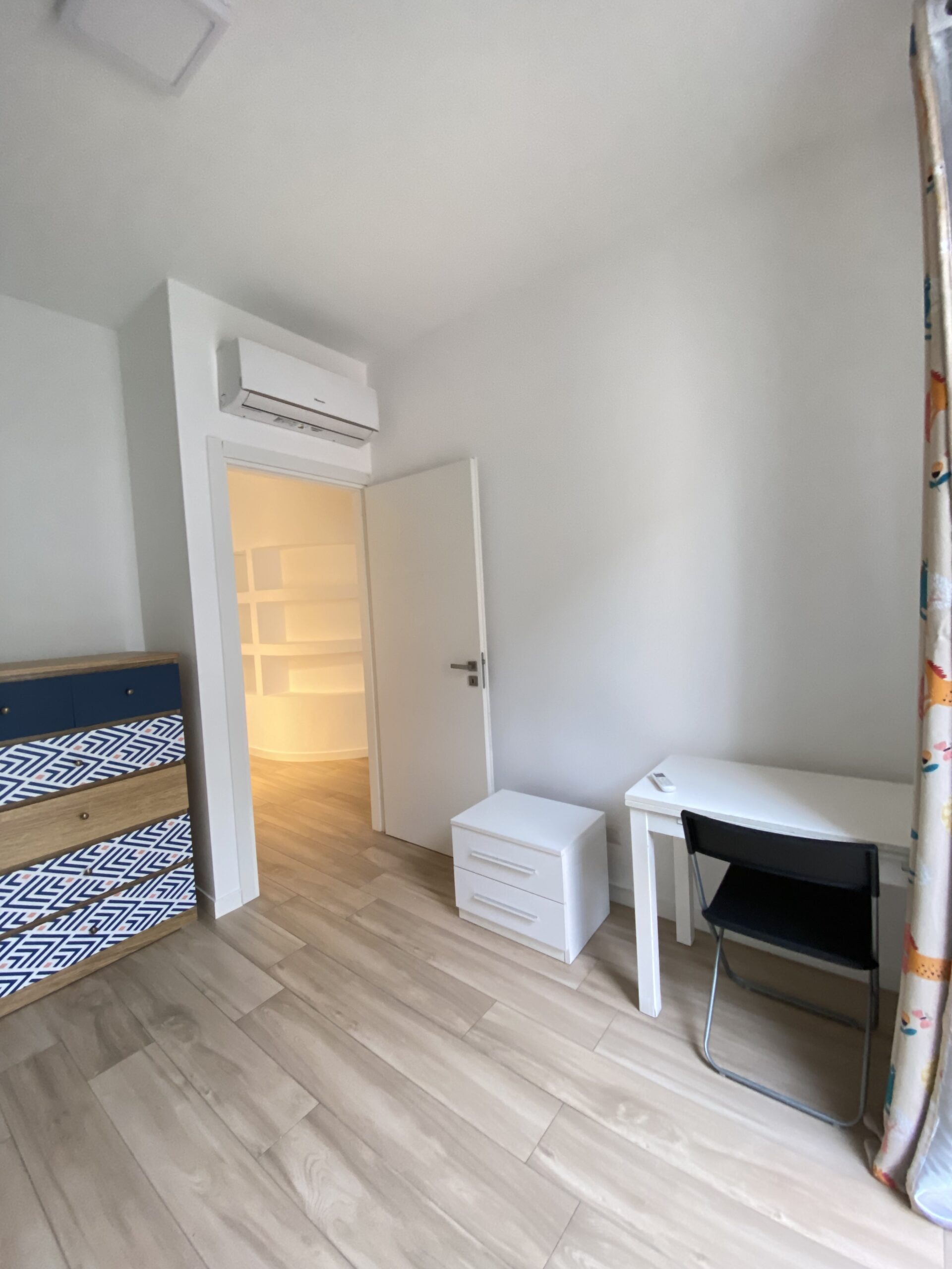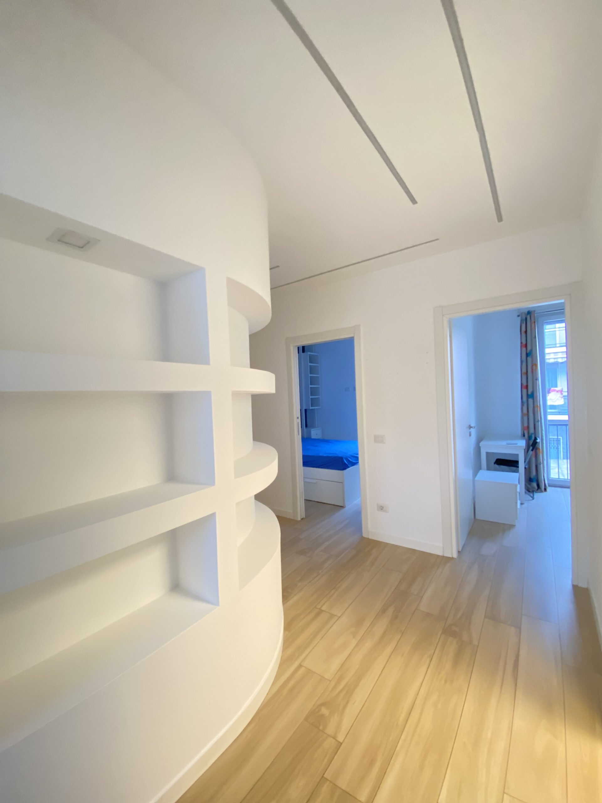 L’appartamento è composto da ingresso, soggiorno con cucina a vista con balcone, 2 camere da letto e bagno cieco con aspirazione forzata.
