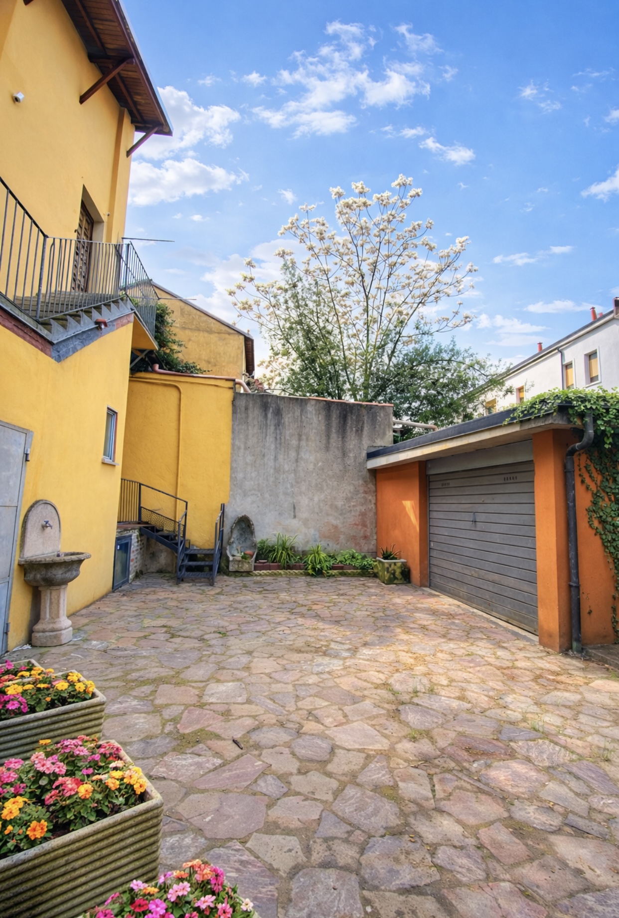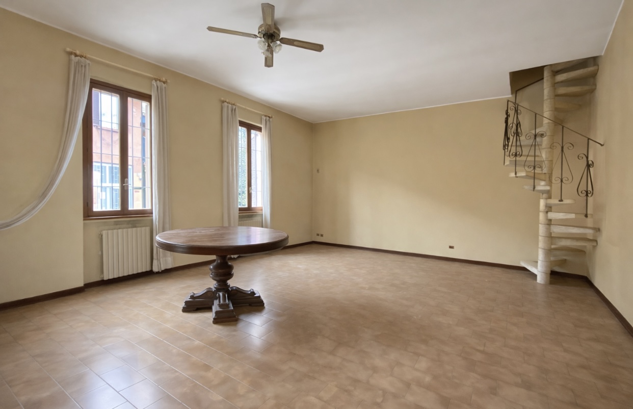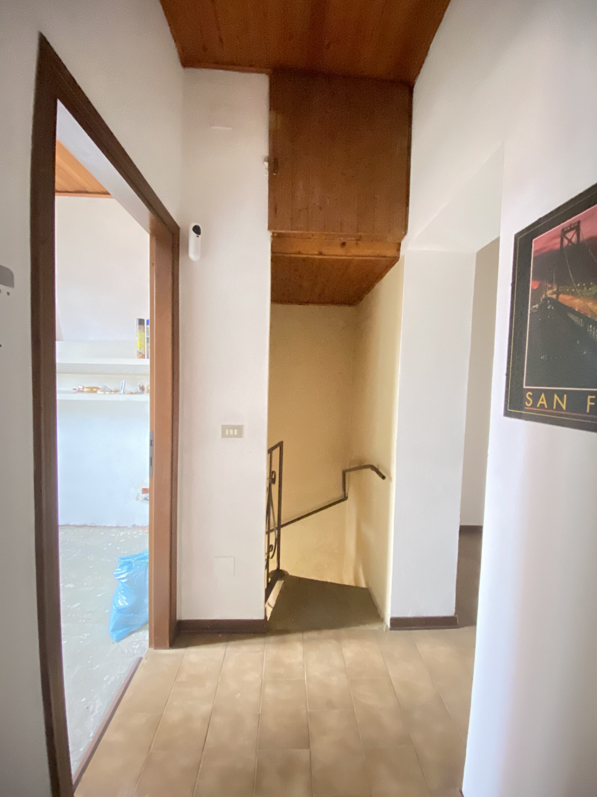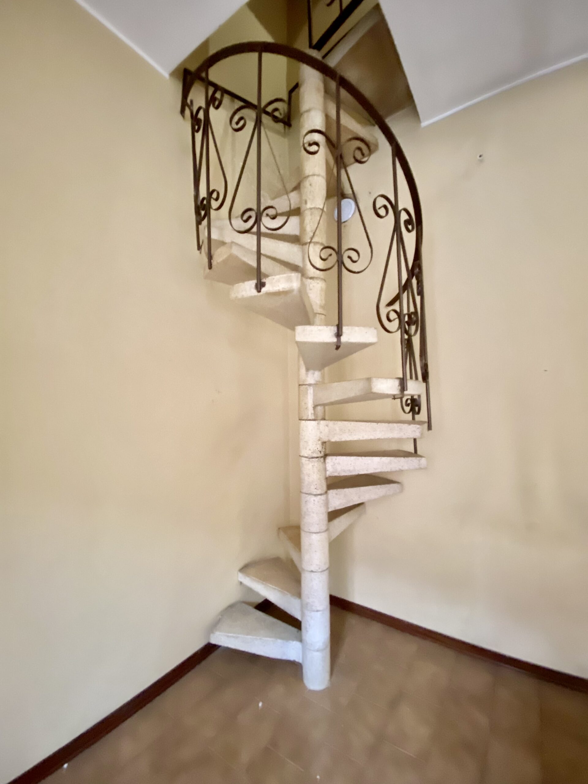 Composta da doppio ingresso, ampio soggiorno, cucina a abitabile con camino, 2 camere da letto, 2 bagni, ballatoio, ripostiglio soppalcato, giardino mq 50, box auto e cantina 20 mq.