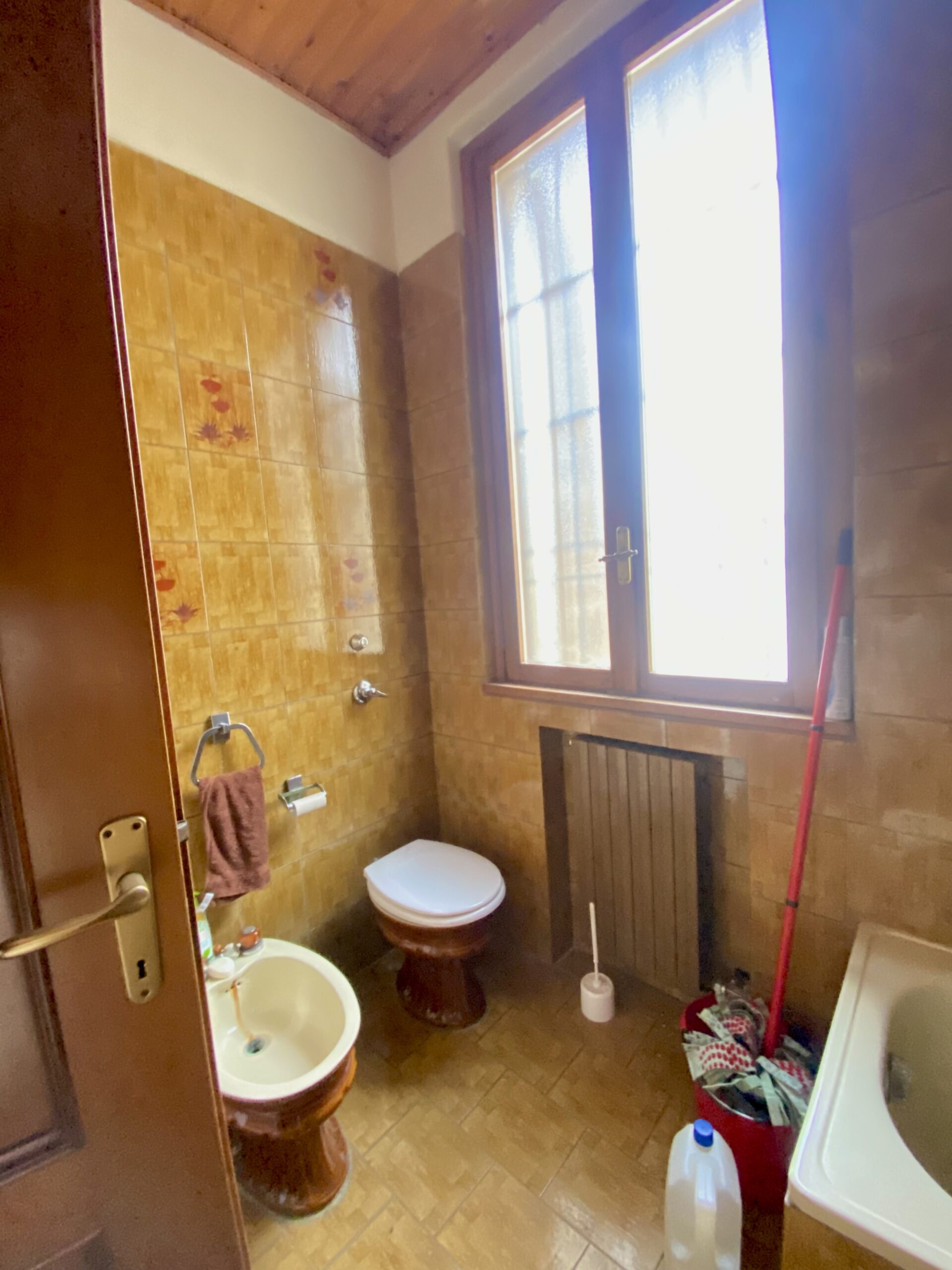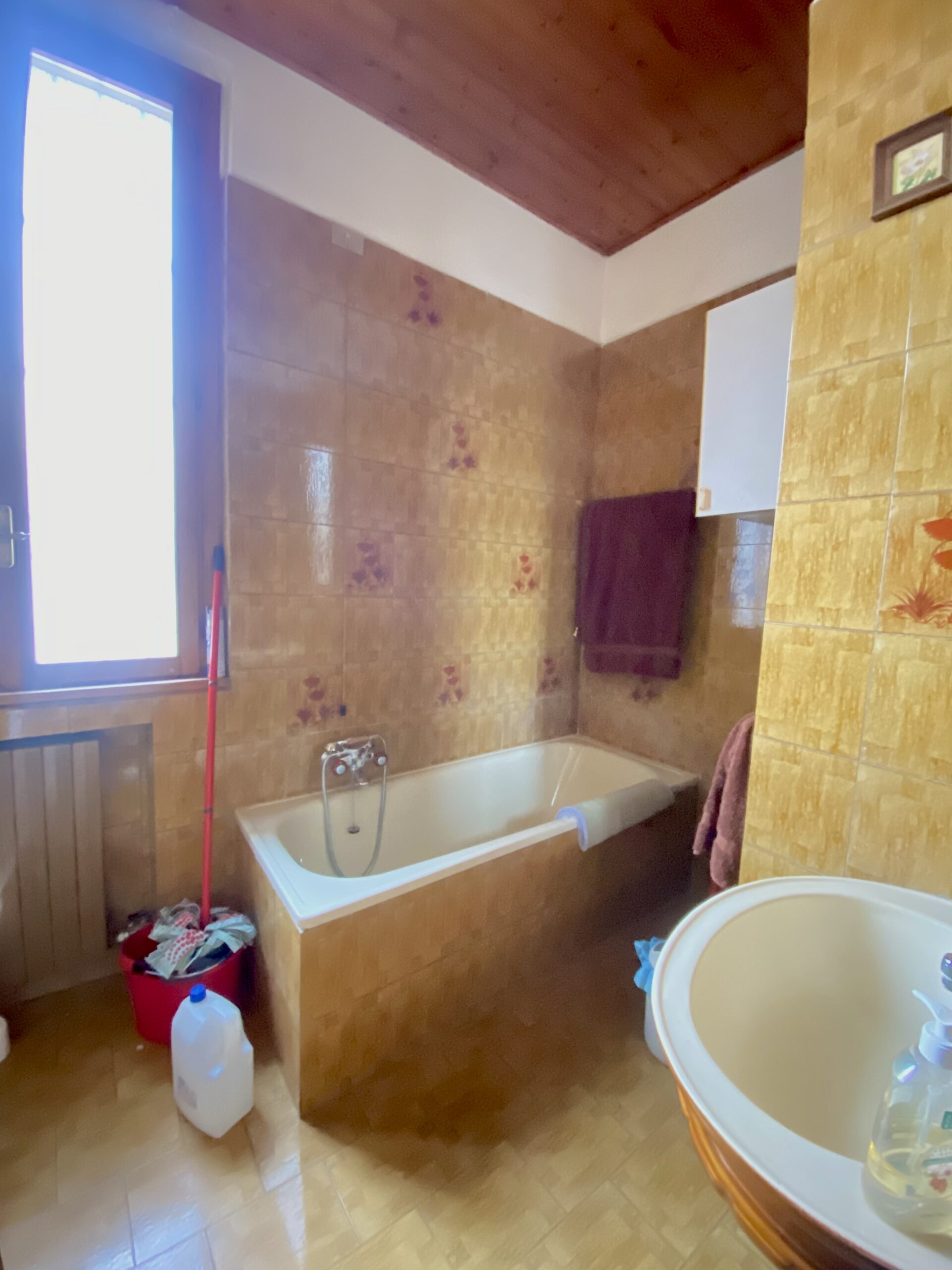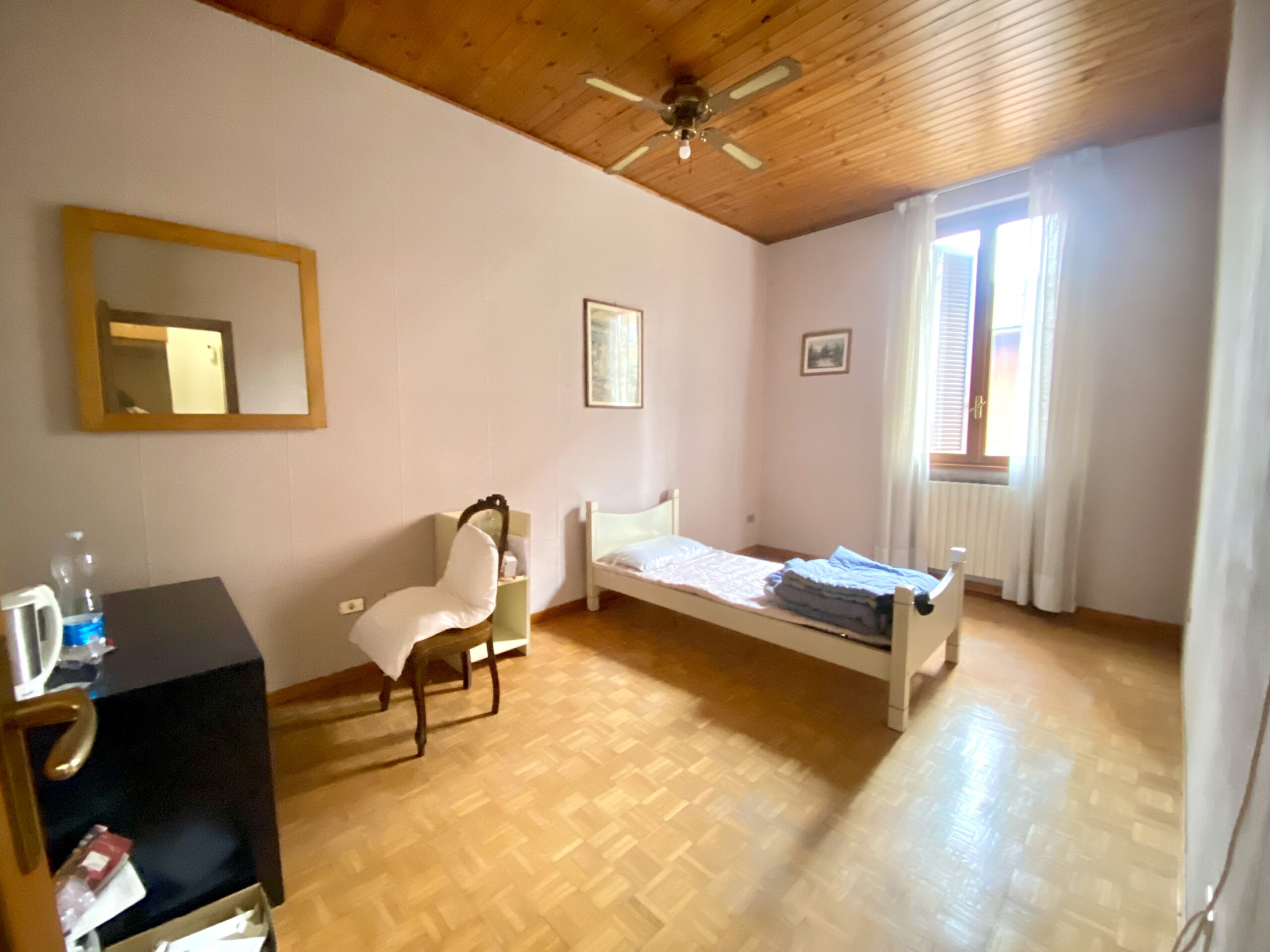 Composta da doppio ingresso, ampio soggiorno, cucina a abitabile con camino, 2 camere da letto, 2 bagni, ballatoio, ripostiglio soppalcato, giardino mq 50, box auto e cantina 20 mq.